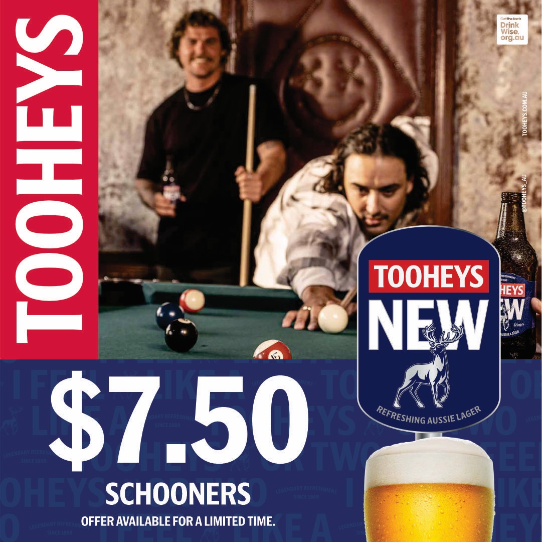 $7.50 Tooheys New schooners